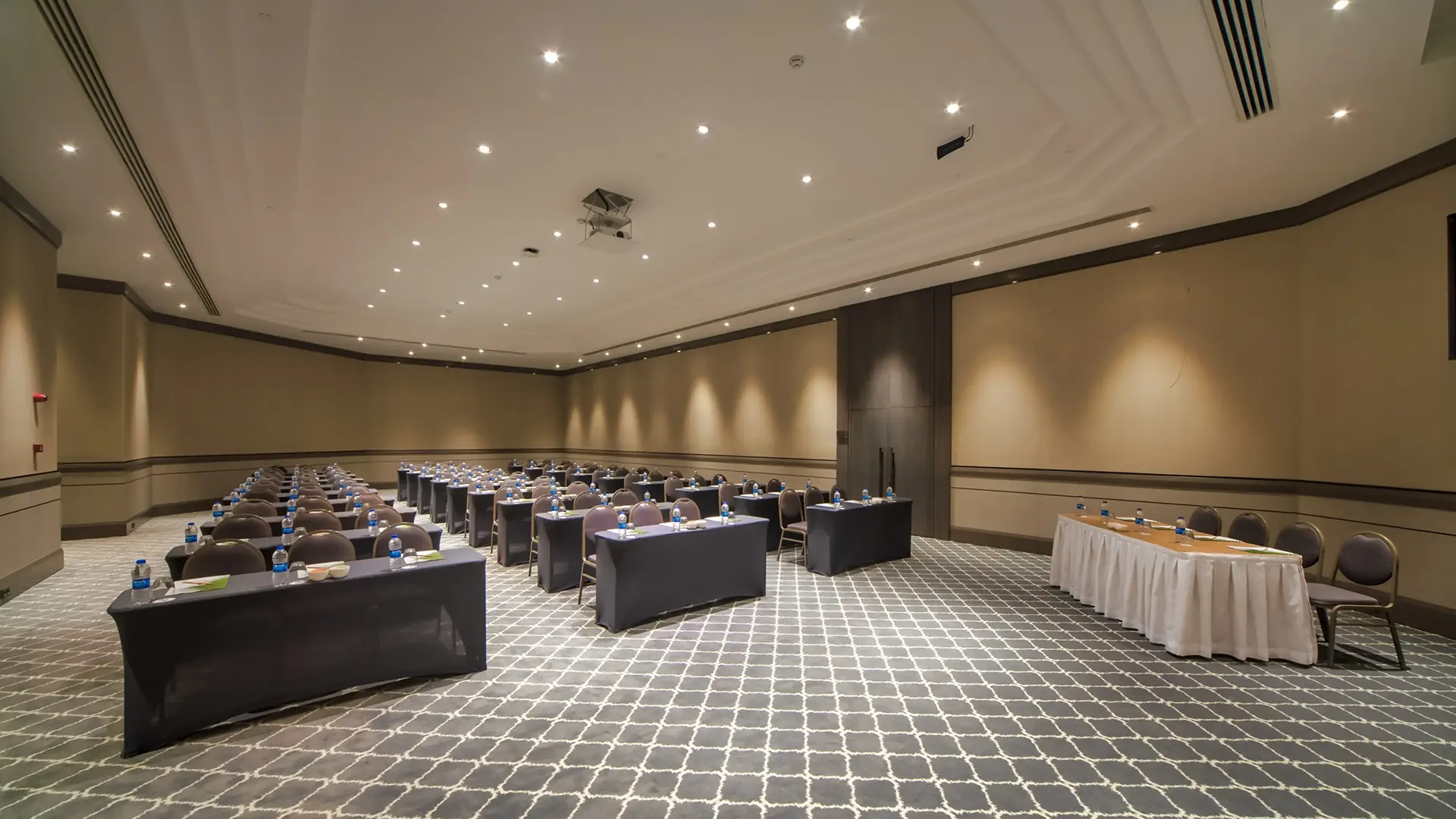 930m² alanı ve yüksek kapasitesi ile büyük organizasyonlar için ideal bir konferans salonudur. Geniş oturma düzenleri ve esnek kullanım alanı ile fuar, gala ve seminer gibi çok amaçlı etkinliklerde tercih edilir.